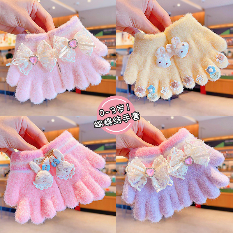 子供用手袋女の子秋冬ニット保温防寒小五本指乳幼児防風かわいい甘い指サック