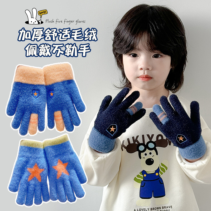 ウルトラマン子供手袋男の子5本指カバー冬保温子供书き込み半指书き作业3歳男の子5