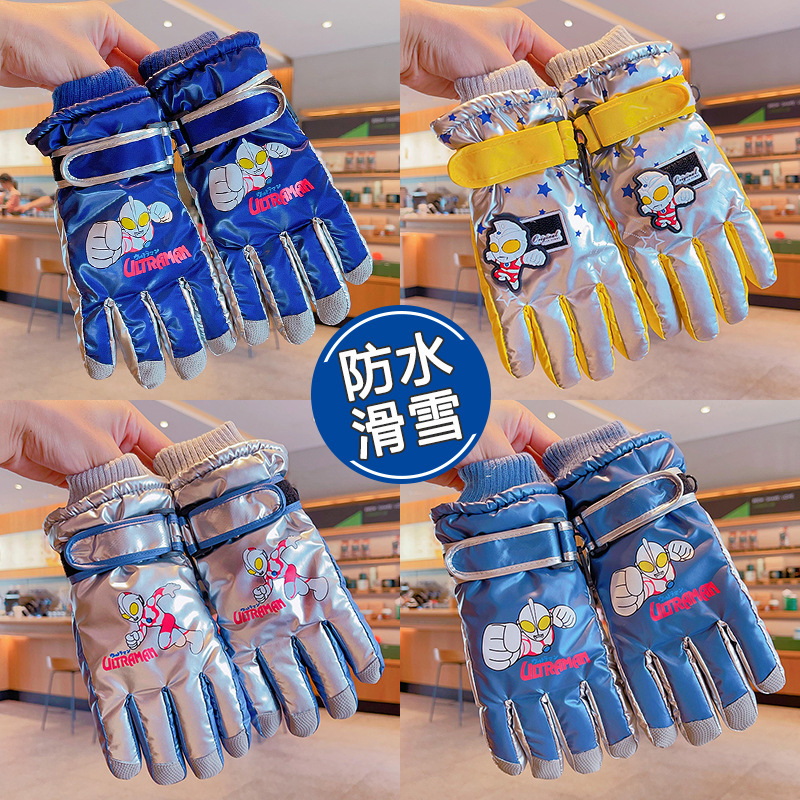 ウルトラマン児童スキー手袋冬の男女児童にベルベットをつけて学生が学校に乗る子供の屋外で雪を遊ぶ
