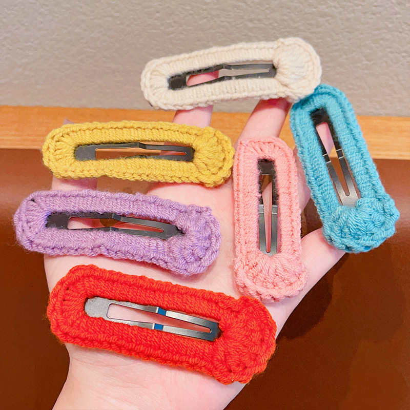 2023秋の韓国版の新型子供の赤ちゃんの幾何学的なニットの毛糸のヘアピンの女の子のかわいい髪の前髪
