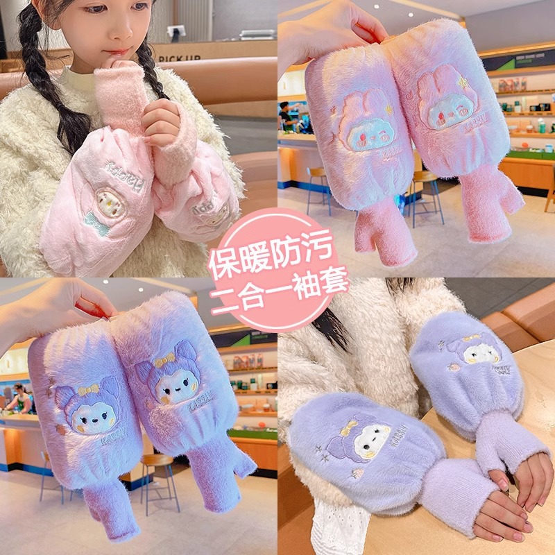 クロミ袖カバー手袋付き一体二合一男の子女の子秋冬字保温カバー袖子供袖