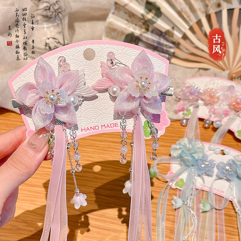 新しい子供の漢服の髪飾りの花の鈴の時代の頭飾りのレトロなフリンジのリボンの時代の髪飾り