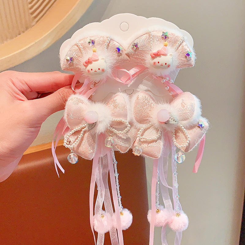 子供の新年の髪飾りの女の子の古風の正月のピンクの髪飾りの中国風の漢服のクリップの赤ちゃんの髪の女性
