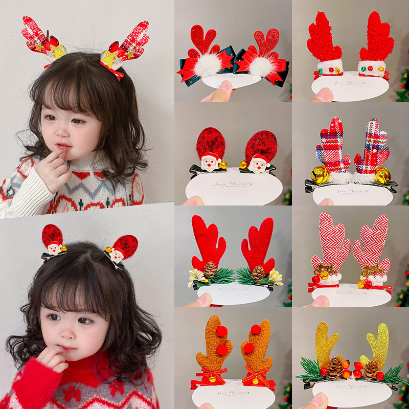 2024新しいクリスマスの装飾のヘアピンの女の子の髪飾りの鹿の角の対のヘアピンの子供のクリスマスのヘアピンの髪飾り