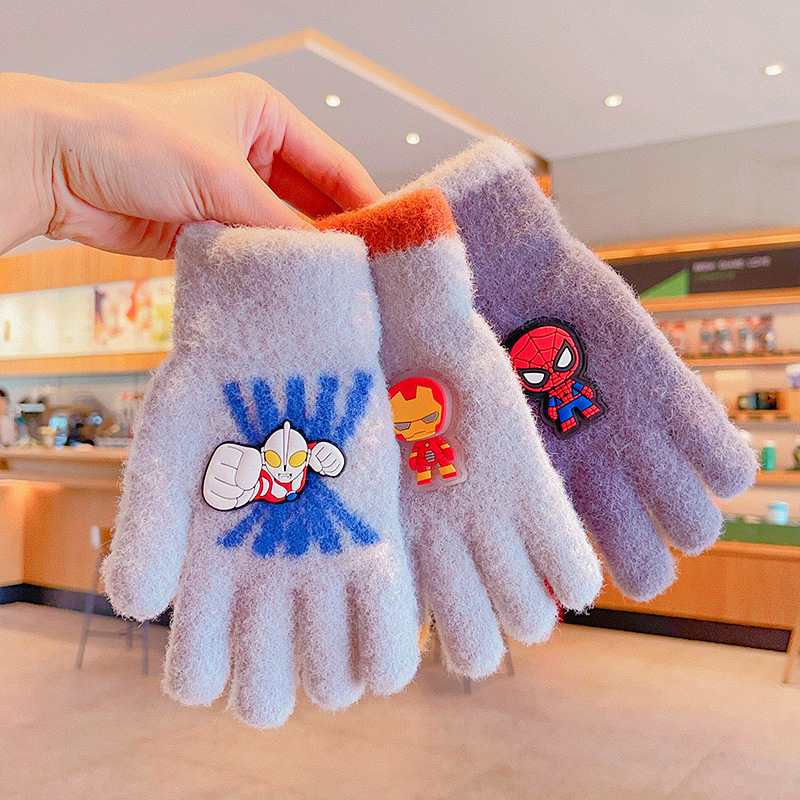 秋冬児童ベルベット保温五本指手袋萌え趣味かわいいニット防風冬学生ウルトラマン手袋