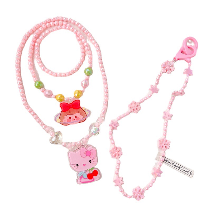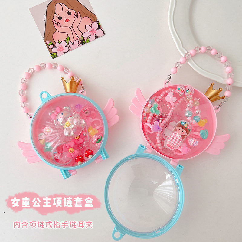 子供用ネックレス女の子プリンセスかわいい手作りビーズアクセサリー女の子リング漫画アクセサリーボックス诞生日プレゼント