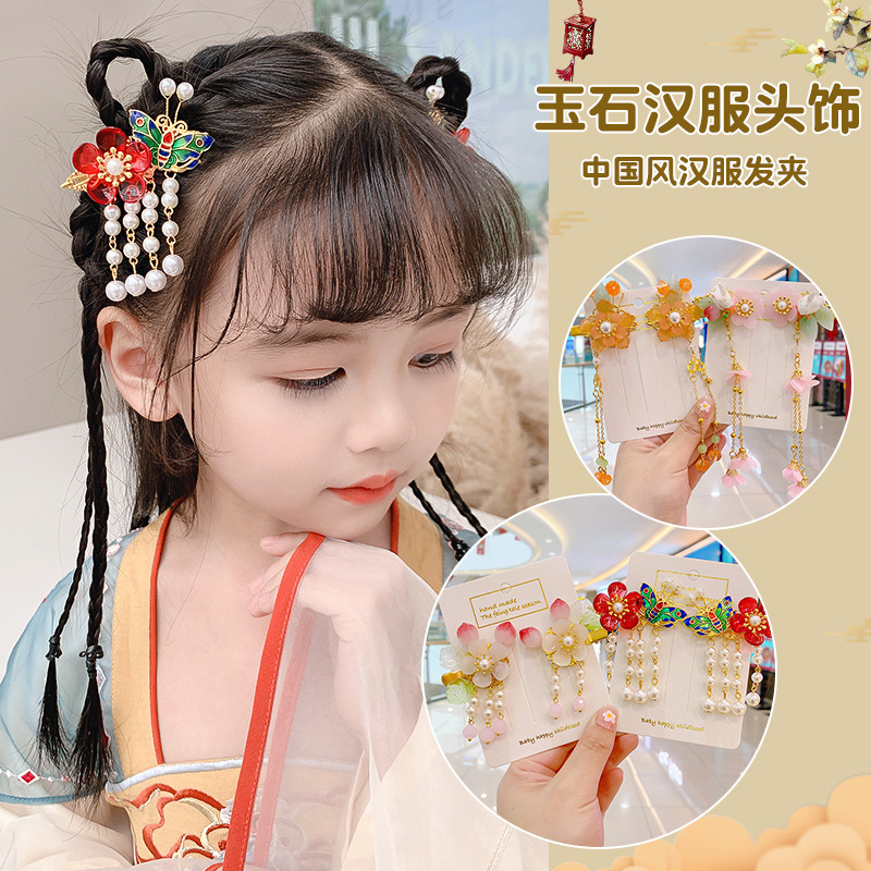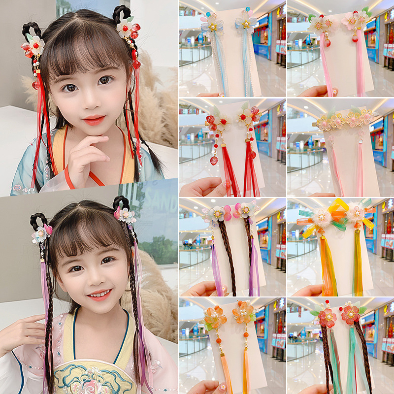 古風の頭飾りの子供の漢服の中国風の髪飾りのかつらのお下げの女の子のフリンジヘアのアクセサリーのクリップの時代のヘアピン
