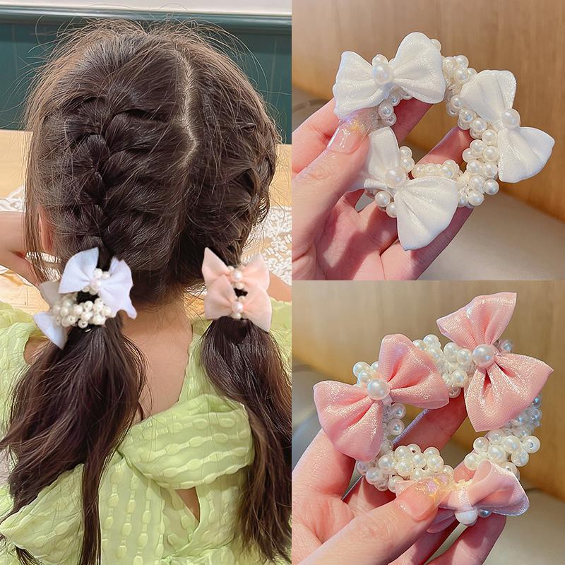 新品子供用シュシュ蝶結びパールシュシュシンプルinsストラップ韓国高級感ヘアロープ皮筋ティアラ