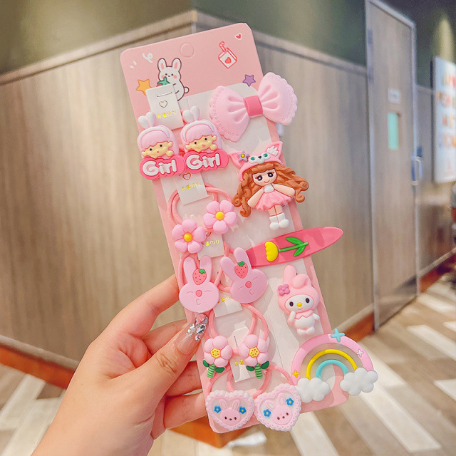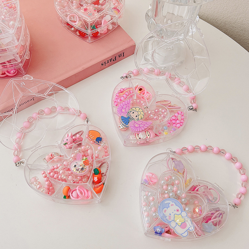 子供のネックレスの新型の夏の王女の数珠のブレスレットの手提げセットの箱のかわいい漫画の洋気の女の子のヘアピンの装飾