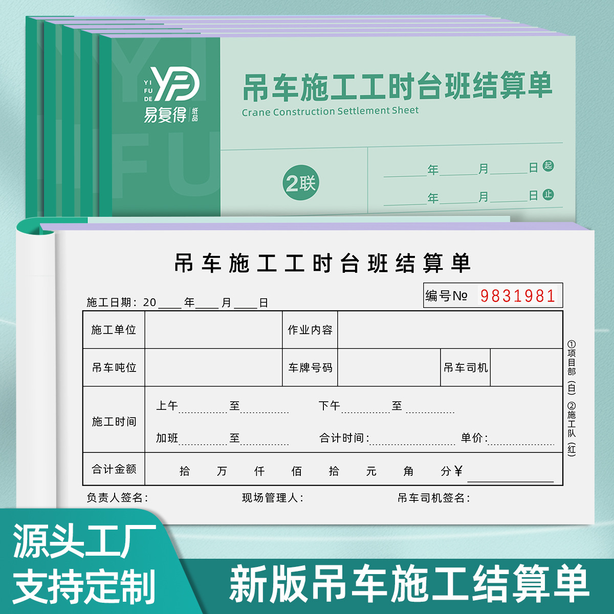 クレーン工事台班決済単掘削機の時間単機械ビザ単シャベルフォークリフトの作業指示領収書のカスタマイズ