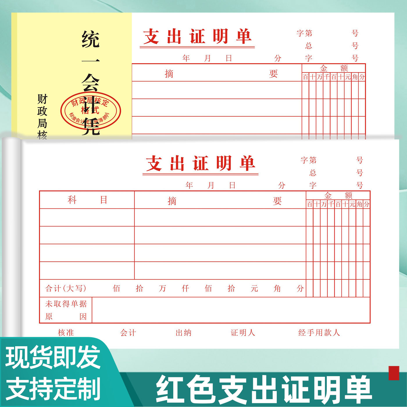 赤い支出証明書、財務一般現金支払い伝票、財務用品、経費支出証明書