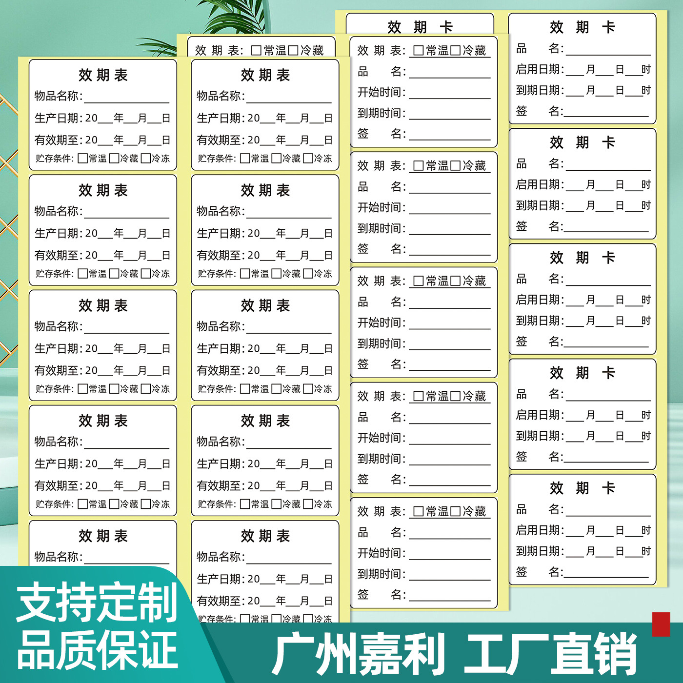 有効期間表粘着ラベルは、粘着バックゴムの生産日シールカスタム食品有効期限表示カードを引き裂きやすい