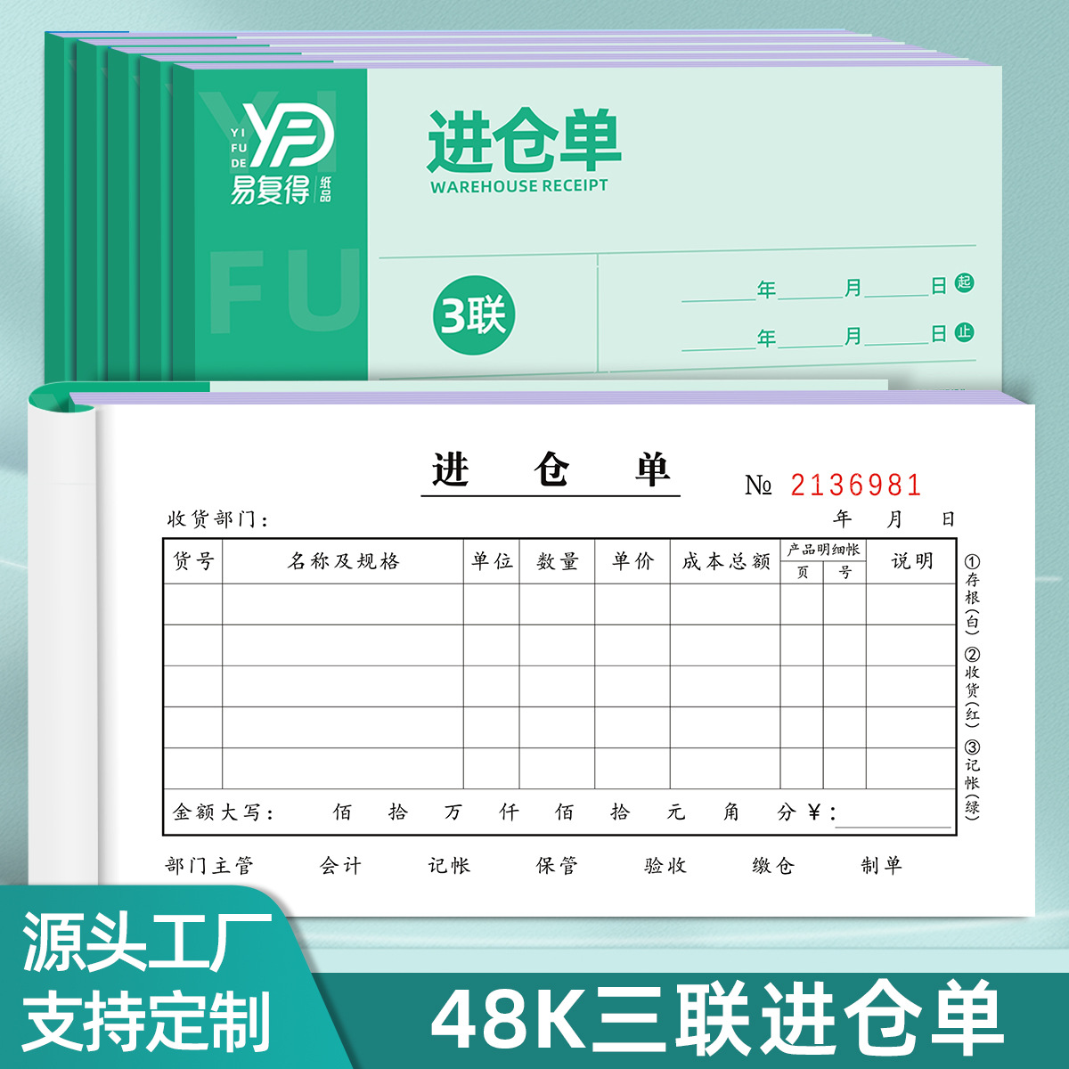 回復しやすい紙品三連領収書二連入金領収書財務現金申告書手形本複写紙カスタマイズ