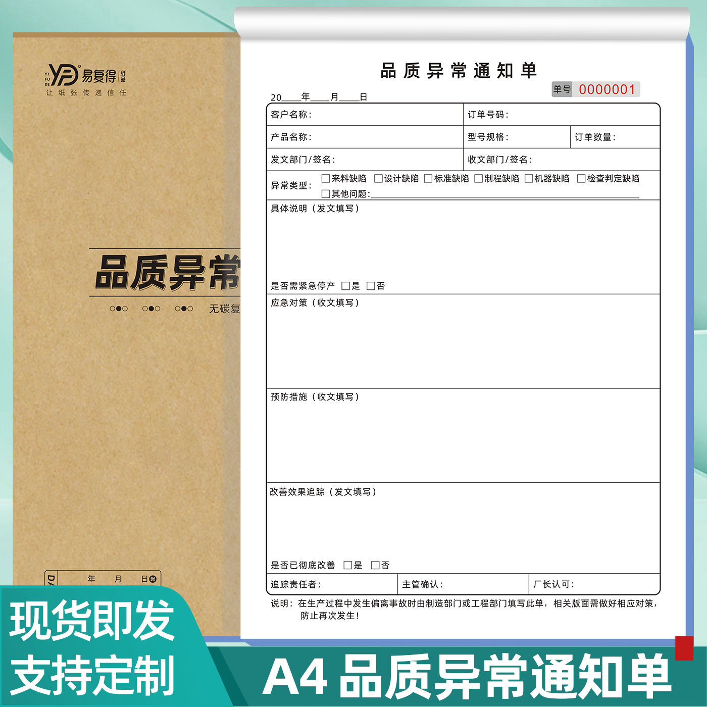 A4品質異常通知票カスタム返品再加工票不合格品処理票品質検査報告書カスタム