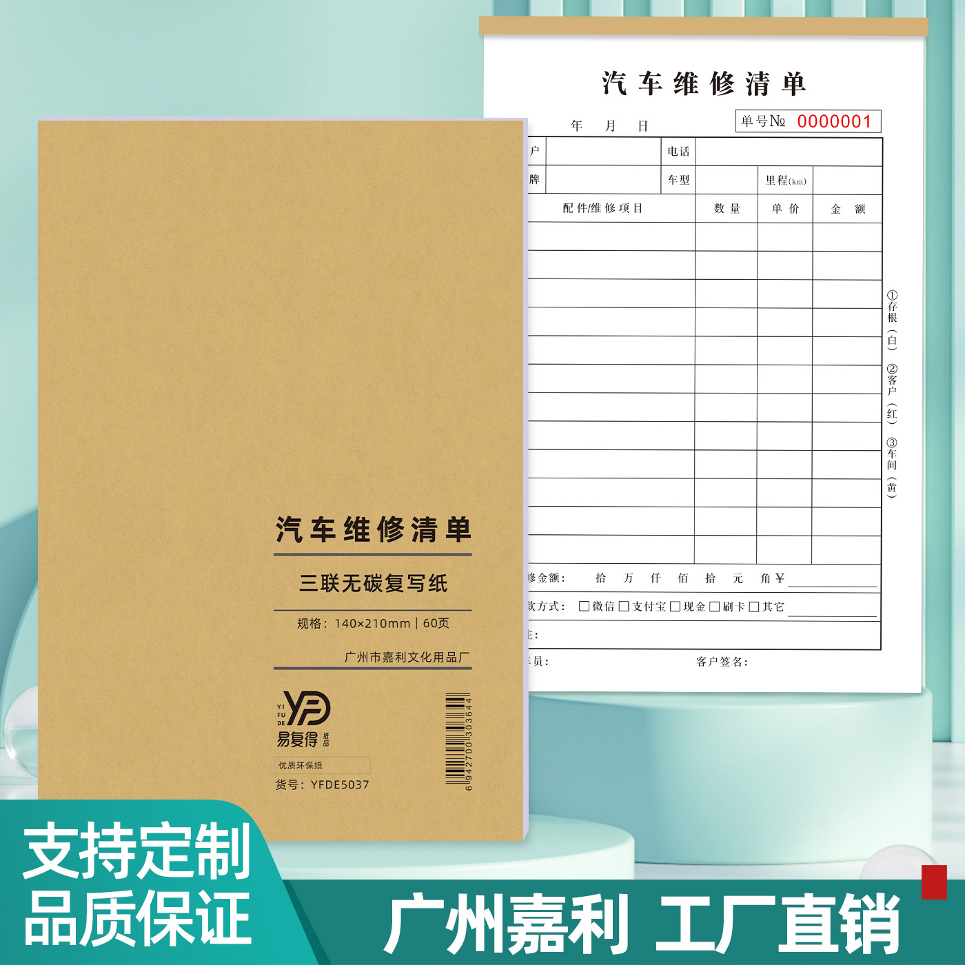 自動車修理リスト二連三連複写紙車両保守修理決算書部品明細書はカスタマイズできる