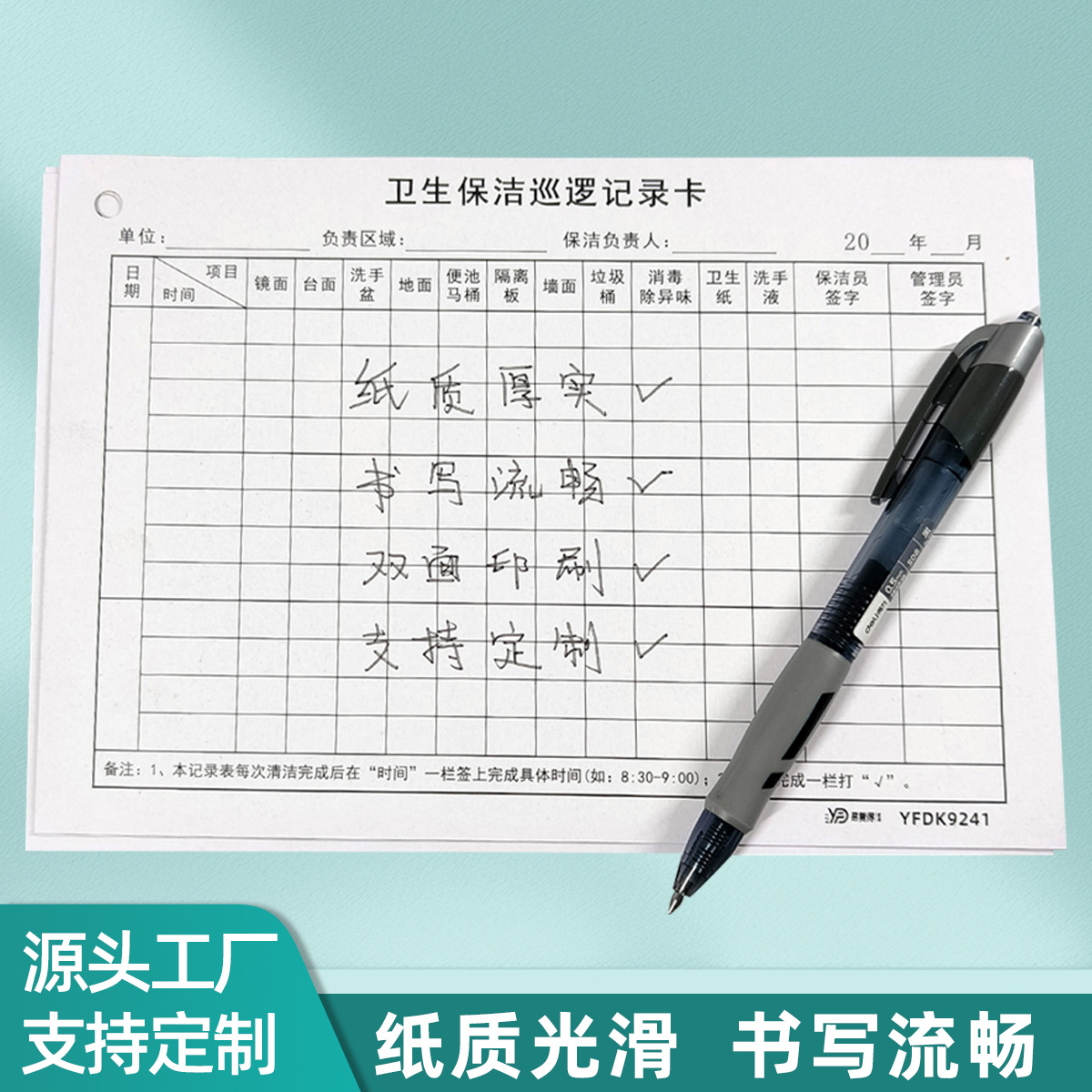 Yifude衛生清掃パトロール記録フォーム、ホテル清掃フォーム、オフィスビル衛生点検帳カスタマイズ