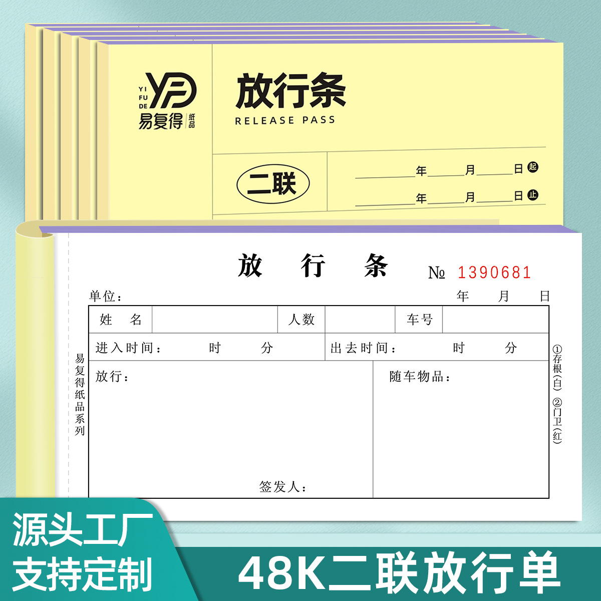 Yifude 二重コピー手配ストリップ駐車場アクセス証ドアマン車両パス貨物外出証カスタマイズ