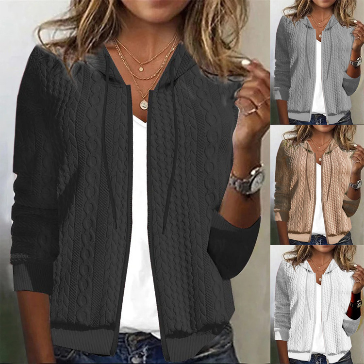 2023秋冬の新型欧米の国境を越えたストライプのカジュアルなスウェットのゆったりしたファスナーのニットのカーディガンの長袖の帽子のセーター