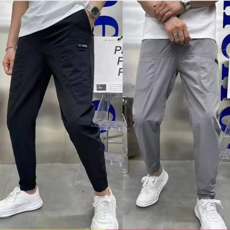 2022夏の氷の糸は六兜の刺繍の高弾の男性のカジュアルなズボンをつなぎ合わせます。