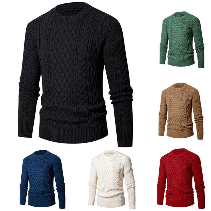 2023秋冬の新型の外国貿易の赤いセーターの男性の中で青年は厚い純色の丸首を厚くして簡単にファッションのプルオーバーの針を掛けます。
