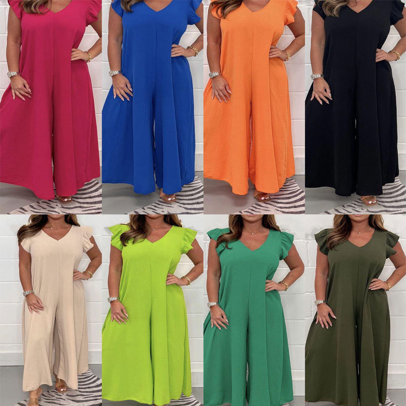 2023国境を越えた欧米ファッションカジュアル色vネックコウモリ袖開叉上着パンツ2点セット大サイズ女装