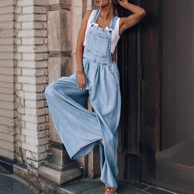 2021年アマゾンwishクロスボーダー夏新作レディースゆるいサイドポケットノースリーブデニムバックパンツ