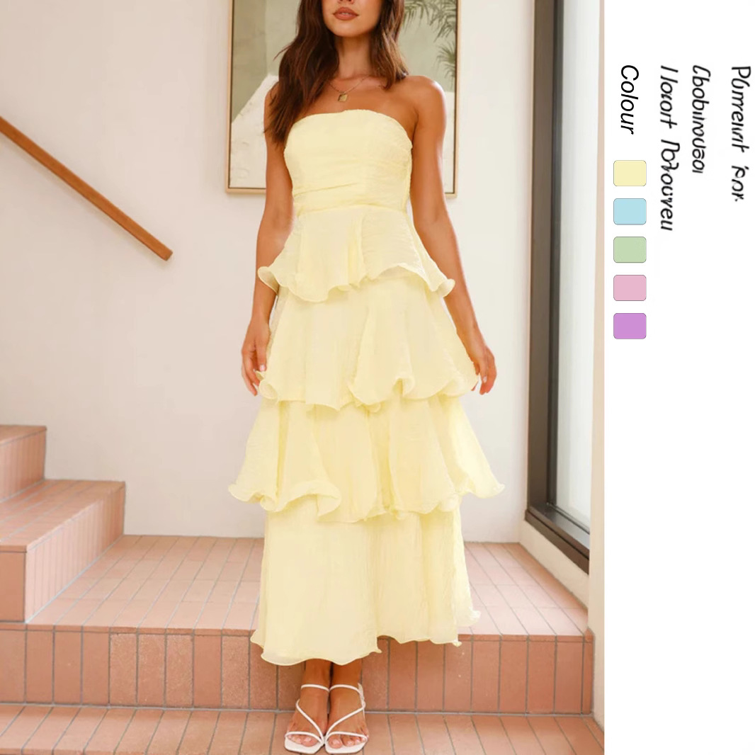 2025 夏ヨーロッパとアメリカのクロスボーダー Amazon 新しいセクシーなファッションチューブトップバックレスケーキレディースドレス