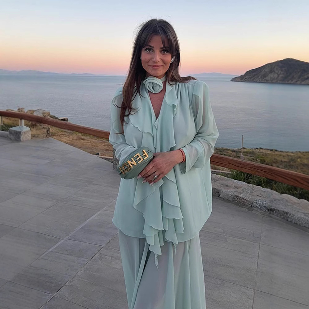 春夏の新作、レイジースタイル、ファッショナブルな無地フリルトップとスカートスーツ2025クロスボーダーヨーロッパとアメリカンスタイル