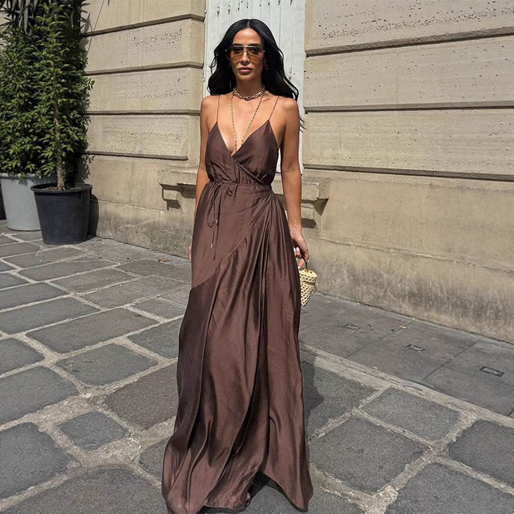 気質ウエストセクシーなレースアップノースリーブ無地Vネックサスペンダードレス女性用2025クロスボーダーヨーロッパとアメリカンスタイルの新しいスタイル