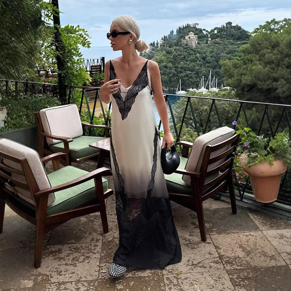 夏のヨーロッパとアメリカンスタイルの新しいセクシーなファッショナブルでエレガントなノースリーブサスペンダーグラデーションレースドレスクロスボーダー外国貿易2025