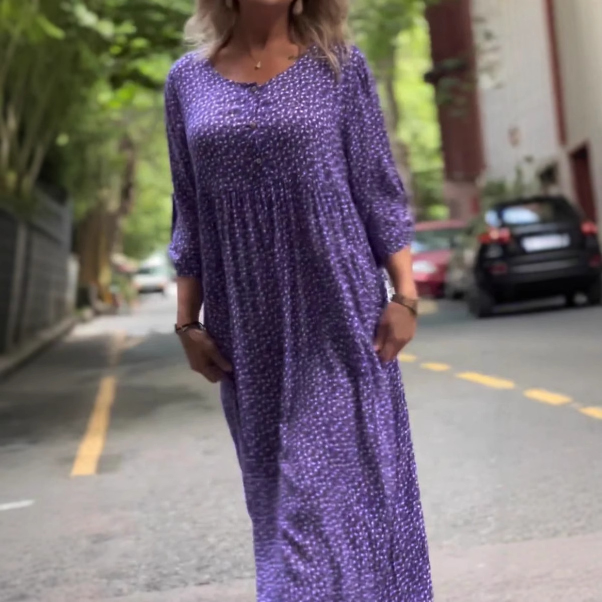 クロスボーダー 2025 Amazon 独立ステーションウィッシュ秋の女性の新しいカジュアルボタン花柄長袖ドレス