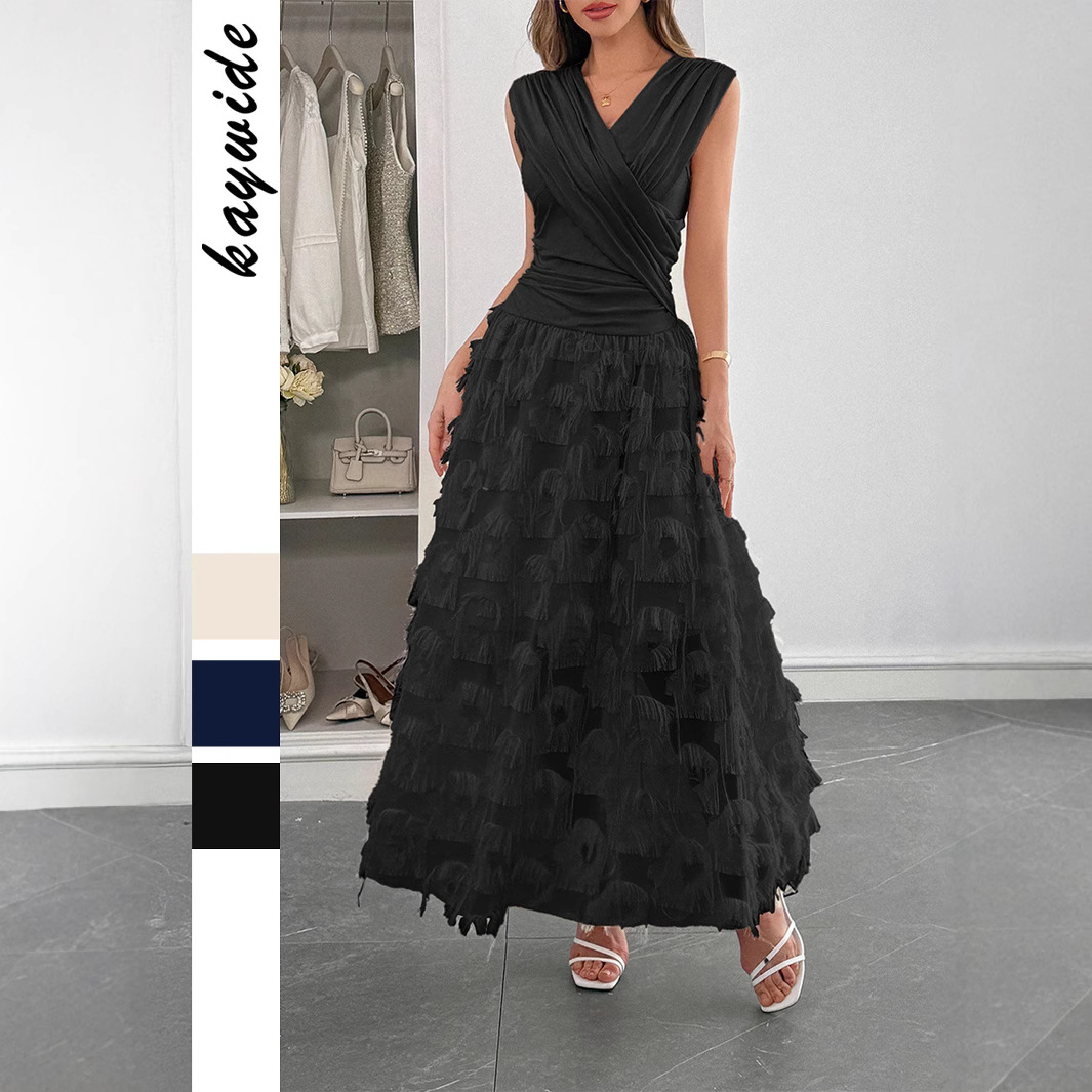 Diyun クロスボーダーヨーロッパとアメリカのエレガントな気質ステッチファッションロングスカートドレス婦人服 2025 夏アマゾン独立ステーション