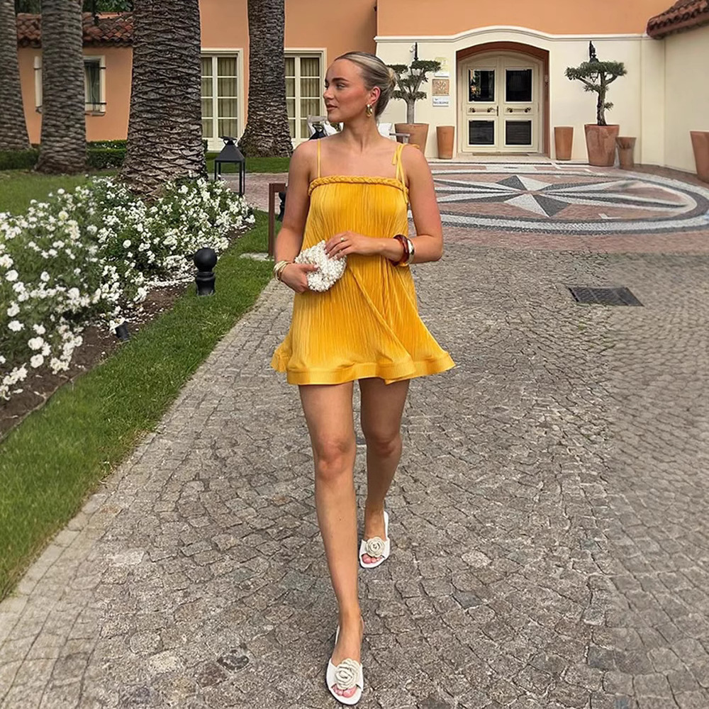 ファッショナブルでセクシーなノースリーブソリッドカラールーズカジュアルサスペンダーツイストドレス2025クロスボーダーヨーロッパとアメリカンスタイルの新しい夏のスタイル