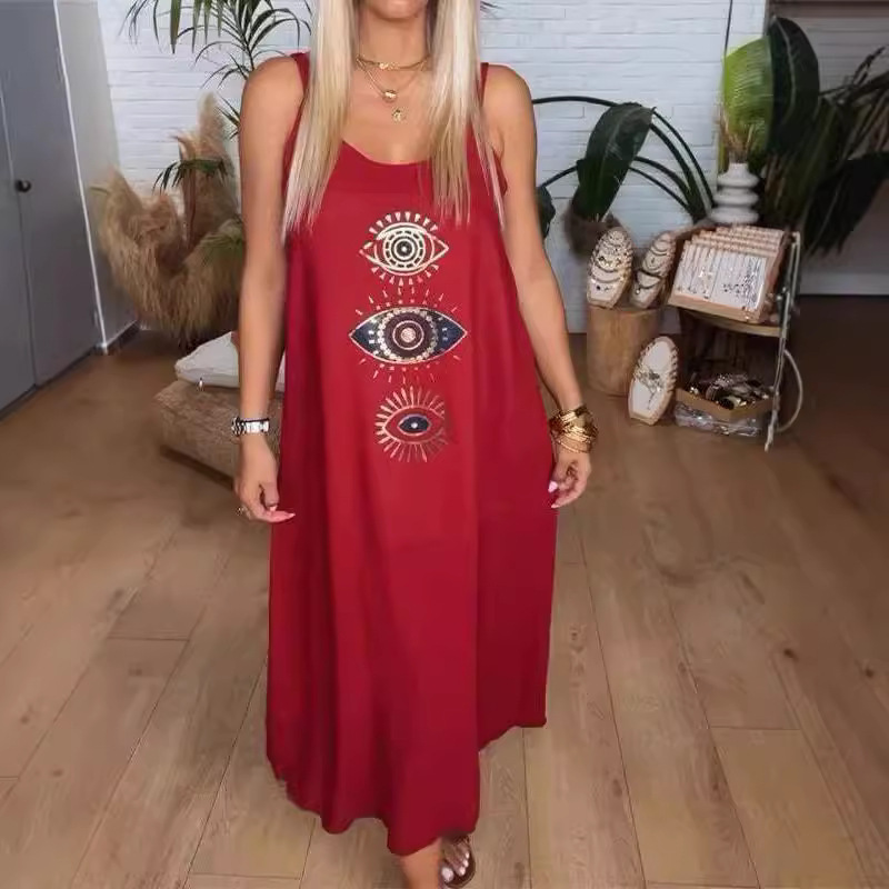 国境を越えた貿易アマゾン AliExpress ホット販売フレンチパターンゴールデンサンパターンプリントロングベストドレス