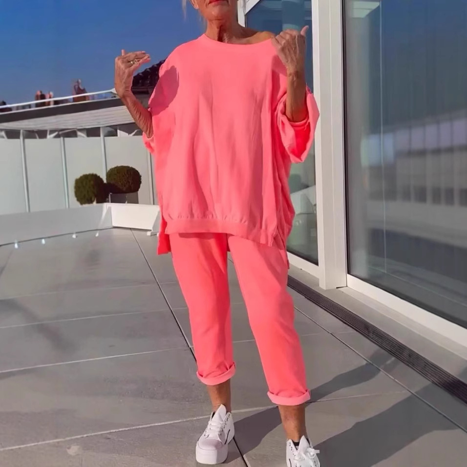 2025 ヨーロッパとアメリカンスタイルのクロスボーダー夏の新しいカジュアル無地ラウンドネック長袖トップスポーツ多用途パンツ 2 点セット女性用