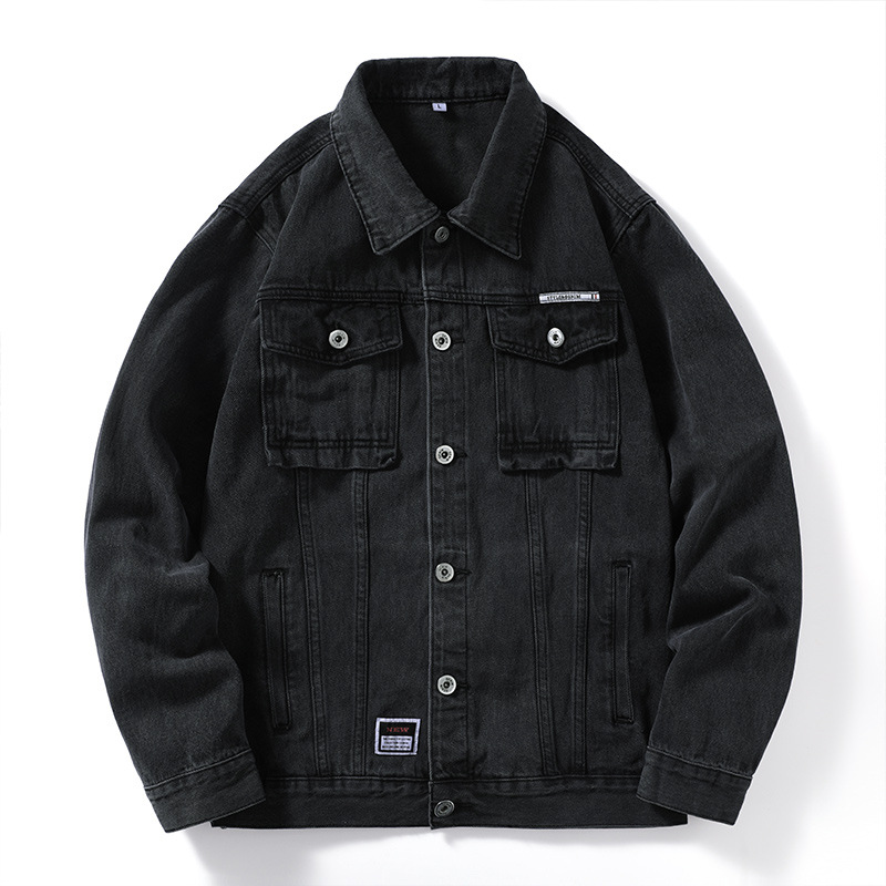 2024新型工装デニムコート男春秋アメリカレトロゆるい春デニムカップル襟折りジャケット
