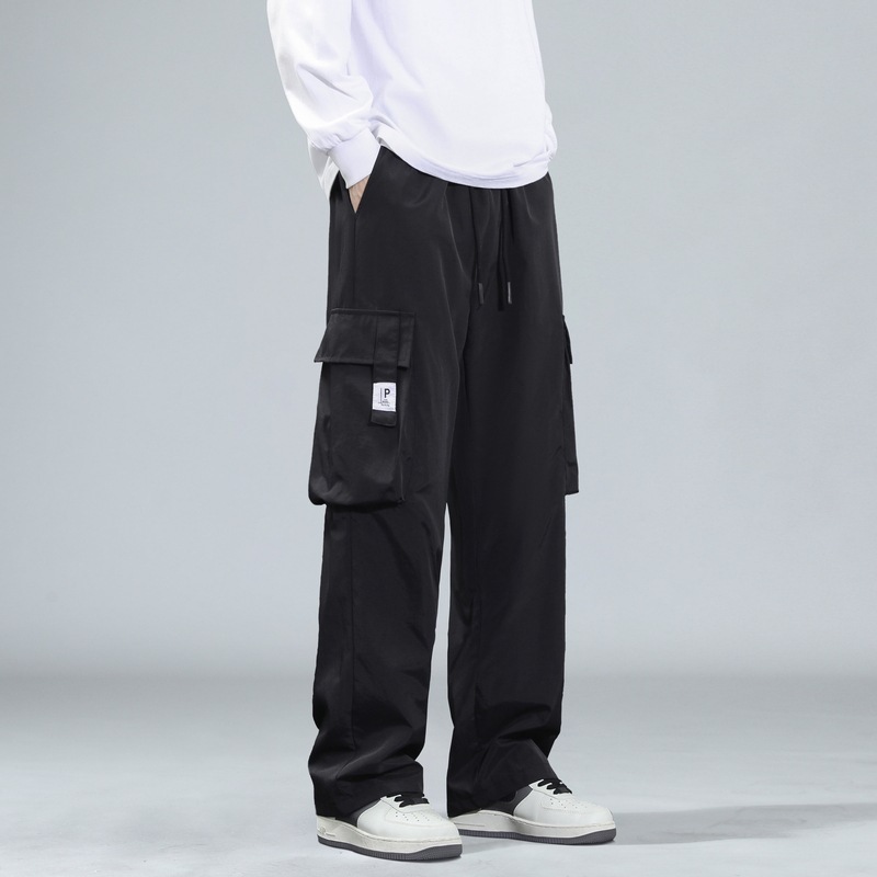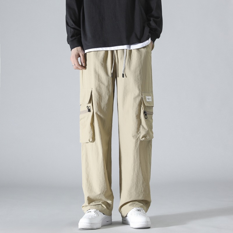 2024日系多ポケット工装ズボン男性秋ファッションブランドゆるいストレートカジュアルパンツヒップホップレトロなデザイン感