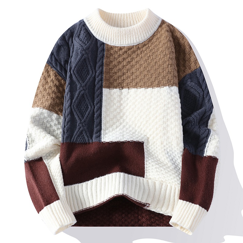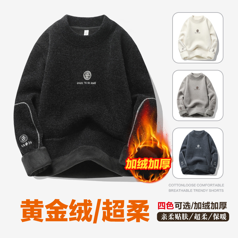 ベルベットの厚い保温一体パイル半高襟セーター男性ゆるい青年純色ジャケット中襟ニットシャツ