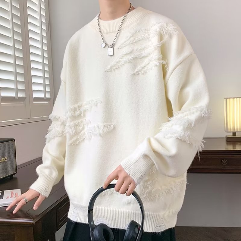 男性の個性的な丸首セーター秋冬のファッションブランドのごろつきが格好いい男性のニットウェアのゆったりした怠惰なコート