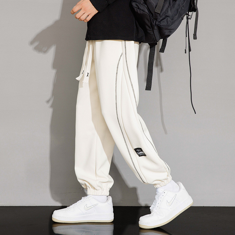 データモデル350グラム高弾性糸複合春秋潮牌ゆるいカジュアルパンツ男性直筒束足カップル運動