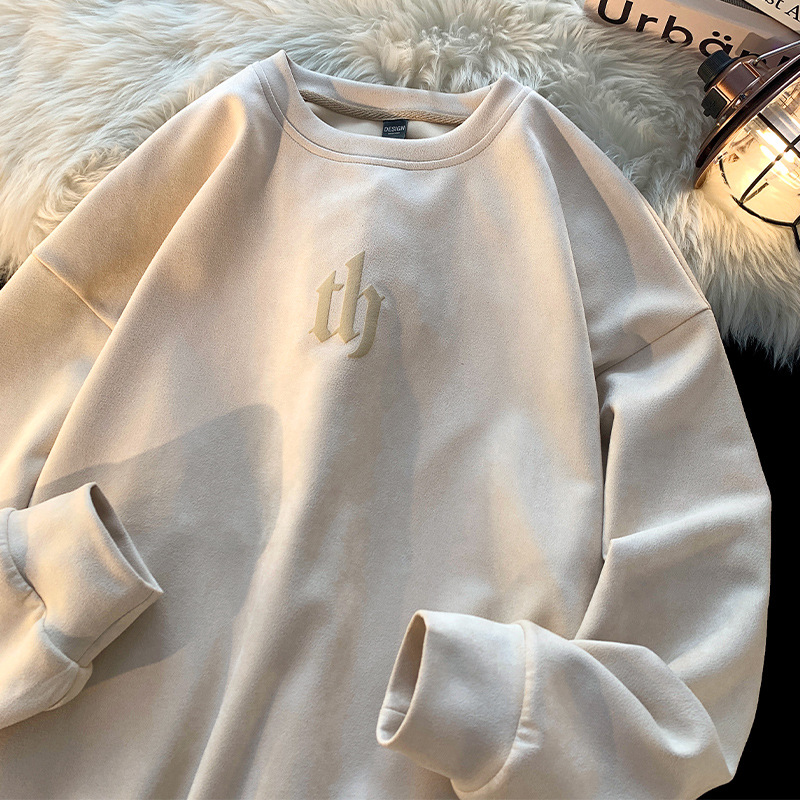 スエードの重いポンドのパーカーの男性の春と秋のファッションブランドのアメリカのゆったりした上着の丸首のレトロな底の長袖