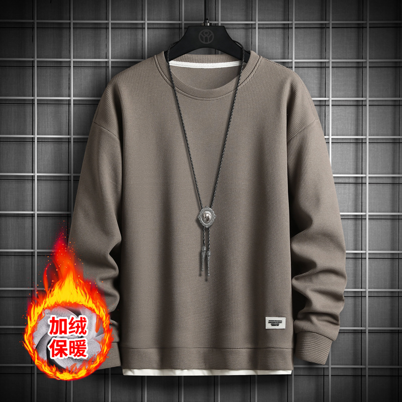 丸首とベルベットの男性秋冬の新型アメリカ風ワッフルの偽の長袖tシャツ青年ファッション上着