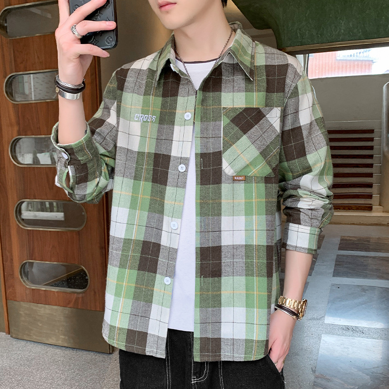 メンズ長袖格子シャツ2021秋新作韓国版ファッション青年ハンサムメンズ春秋カジュアルシャツ