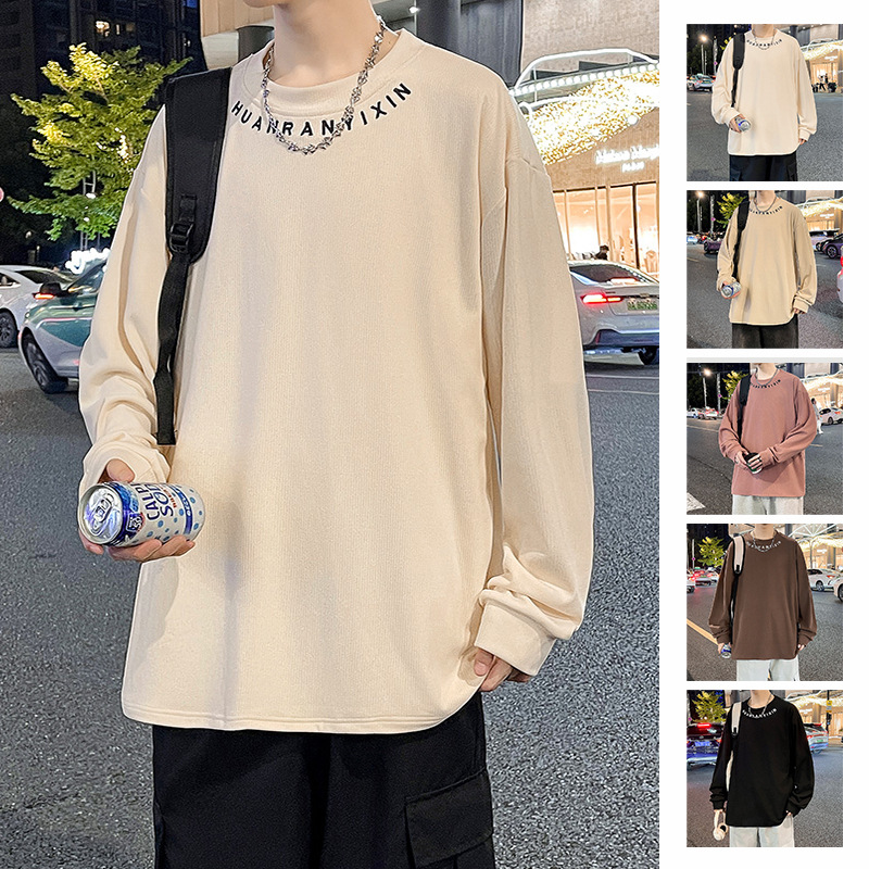 秋冬新作メンズスウェットシャツカジュアル多用途若者ハンサム長袖Tシャツ刺繍ラウンドネックヘビーウェイトスウェットシャツ