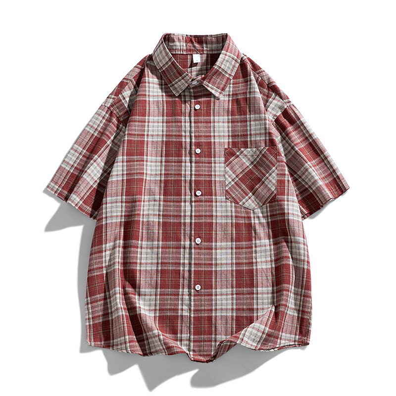 半袖シャツ夏の色合わせの青い格子半袖シャツ男性用シンプルで清潔な通勤彼氏