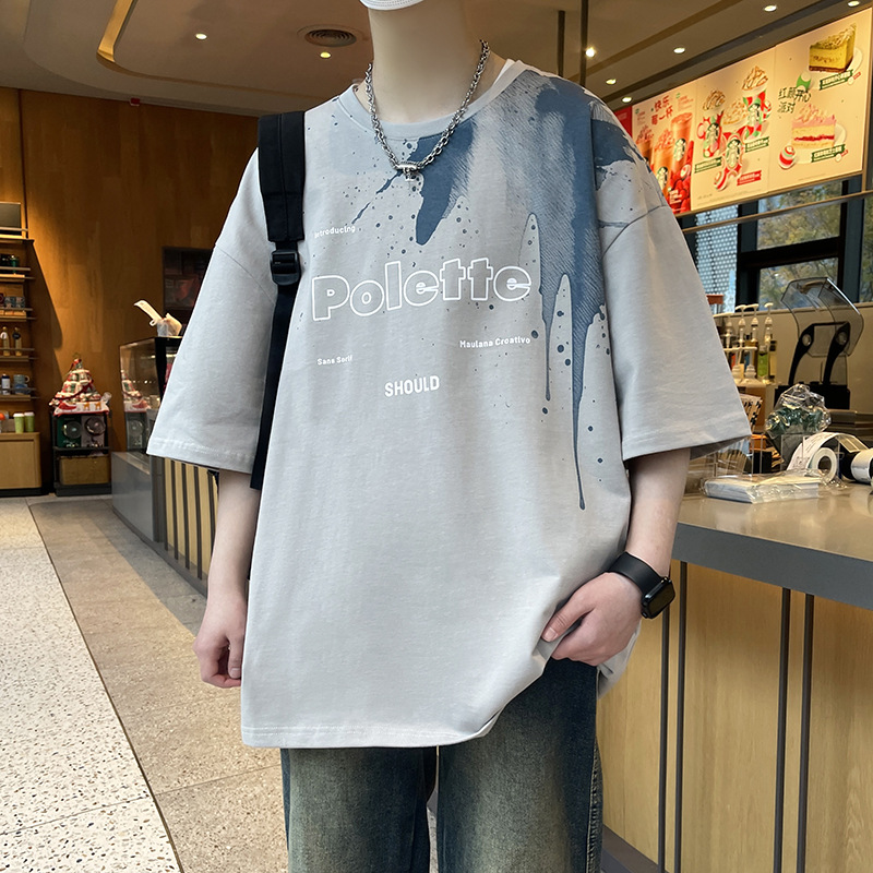 夏メンズトレンドティーンエイジャートレンディブランド学生半袖Tシャツ純綿トップラウンドネック五分袖半袖t2025