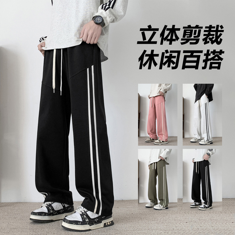 トレンディなストライプワイドレッグカジュアルパンツメンズ春ルーズスポーツストレートスウェットパンツアメリカンレトロハイストリートパンツ卸売