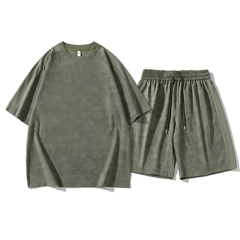 夏用スポーツスーツ、メンズ半袖Tシャツ、クォーターショーツ、アイスシルク、男の子向けのクールでハンサムな夏服の完全なセット