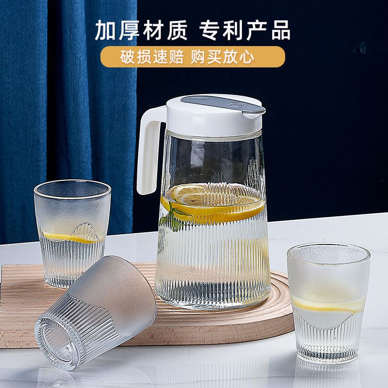 家庭用ライト高級コールドケトルウォーターカップセット高温耐性垂直パターンコールドケトルリビングルームティーポットコールドホワイトケトル
