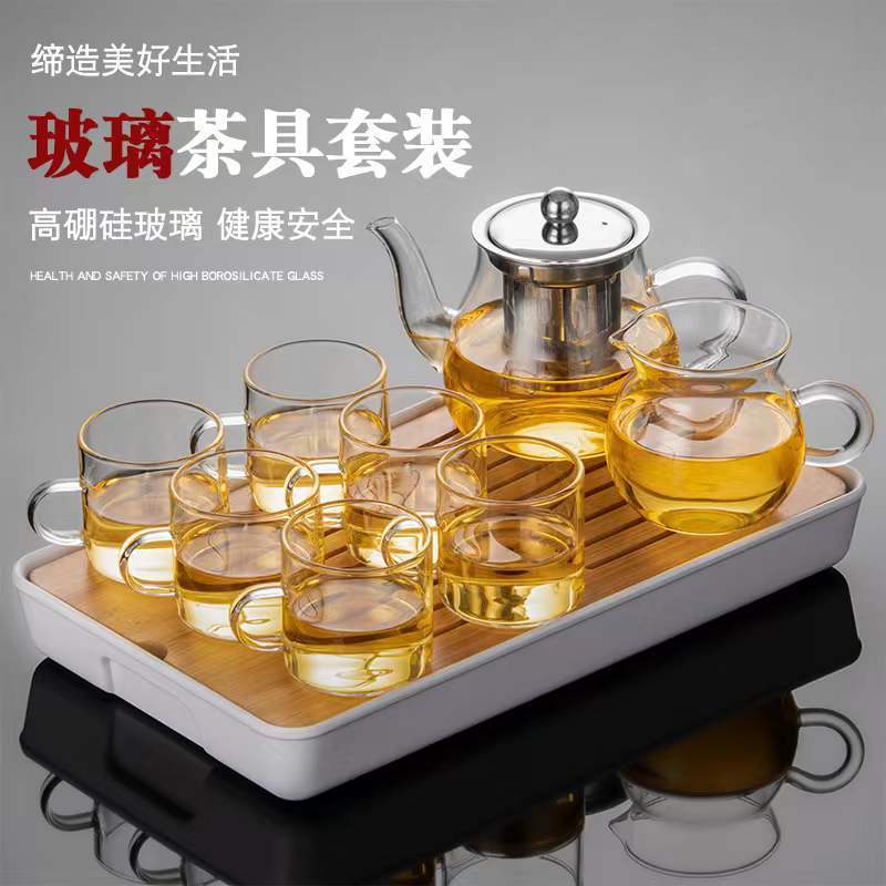 ティーポット家庭用ティーガラスティーセット家庭用ティーカンフーティーセット耐熱フィルターステンレス鋼ティーポット